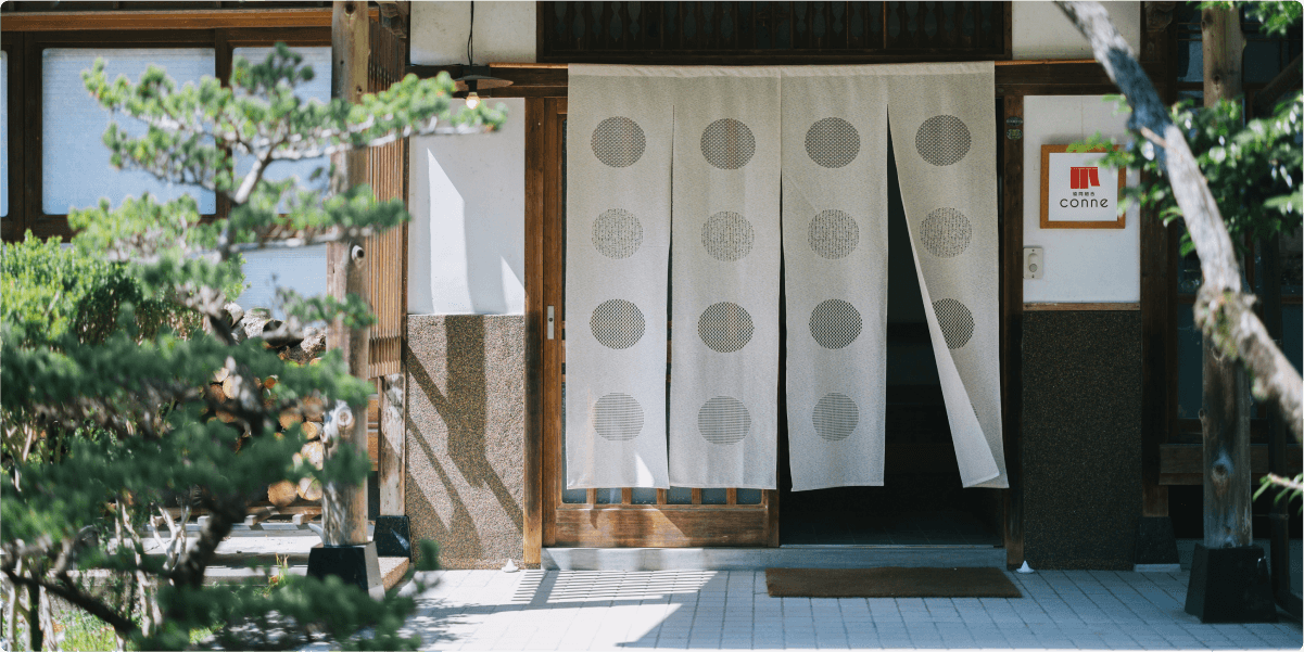 - 日本の文化である「のれん」をくぐって日本に入っておいで、という意味を表現しています。